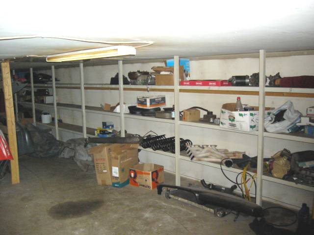 Yläkerran varastotila, jossa etenkin allekirjoittaneen autonosia luvattoman paljon... Enemmän pitäisi olla autossa kiinni... Yläkerrasta löytyy myös tallin paineilmaverkostoa ruokkiva ruuvikompressori jäähdytyskuivaimineen, säiliöineen ja muine tarvittane laitteineen.