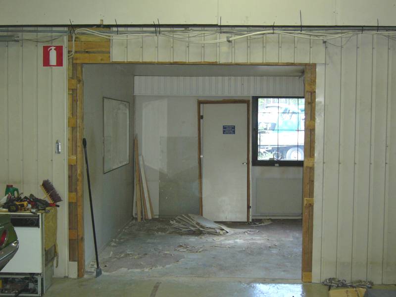 Kuvassa oviaukko on isonnettu, lattiatyöt vielä tekemättä jne...