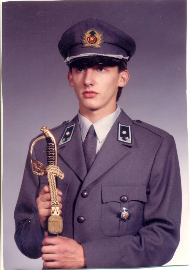 Kuvassa nuori vakavailmeinen vänrikki. Nyttemmin on jo kolmen kertausharjoituksen jälkeen yksi natsa lisää.