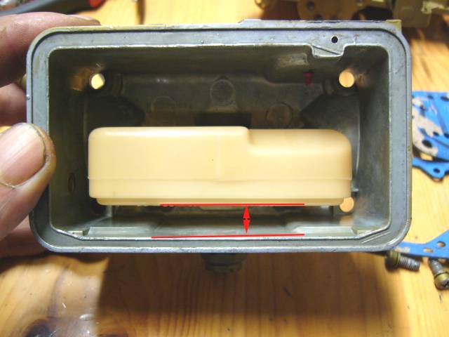 Toinen tapa säätää bensanpinta kaasuttimen ollessa osina ja kuivillaan on mittaaminen; kohokammion ollessa ylösalaisin mitataan kohon etäisyys kammion katosta (kuvassa nuolen ilmoittama etäisyys). Mitta riippuu kohotyypistä ja onko kyseessä ensiö vai toisio. Artikkelimme kaasuttimessa Duracon -koholla mitta on 5/16" ensiössä ja 3/8" toisiossa. Mitat löytyvät Holleyn sivuilta ja korjaussarjasta.