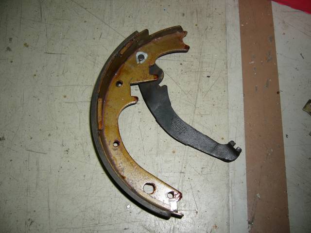Itse kasaus aloitetaan laittamalla käsijarrun käyttämä kengänlevitysvipu paikalleen toisio- tai apukenkään, millä nimellä nyt kutsutaankin ja sokkaamalla se kuvan mukaisesti. Kengän tunnistaa siitä, että siinä on tämä pitempi hihna ja se tulee auton pituussuunnassa katsottuna takapäähän.