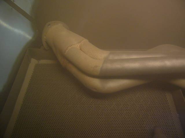 Pelkästään anturin asennusta varten pakosarjaa ei todennäköisesti kannata irrottaa, mikäli sen paikallaan saa hoidettua, joskin irrallisena asennus varmasti on helpointa. Koska sarjat olivat artikkelia kirjoitettaessa muutenkin irti, asennus tehdään luonnollisesti tässä samalla, samoin sarjat uudelleenmaalataan ulkonäkösyistä.