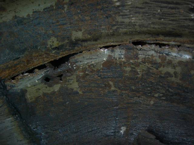 Vesi oli päässyt ruostuttamaan lähes puhki.