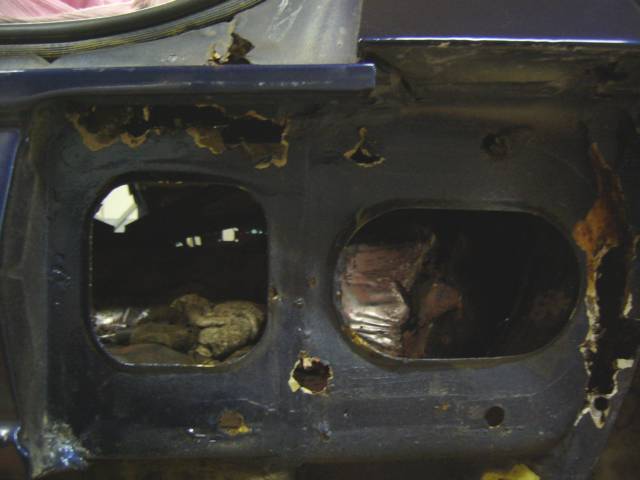 Tässä tapauksessa autolle oltiin tekemässä muutenkin perusteellista remonttia, joten kori oli nostettu irti rungolta, kuten kuvasta on nähtävissä. Mikäli paikattavaa on paljon, ja/tai se on hankalissa paikoissa kuten yleensä, on hyvään tulokseen pääsemiseksi usein järkevää tehdä homma kerralla kunnolla. Tämä tosin vaatii purkimista tapauksesta riippuen kovastikin.