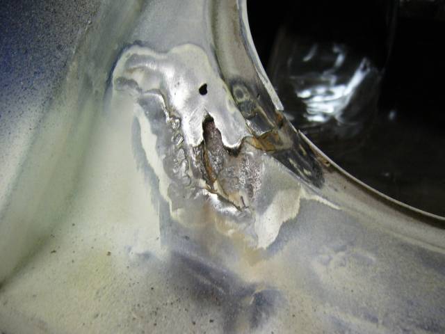 Takaosa, paikattu joskus, vaan ei hyvin.
