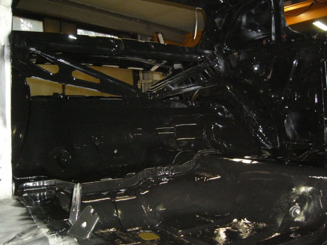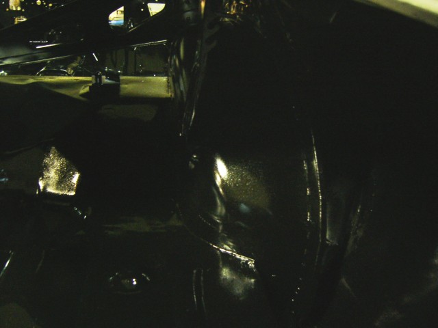 - Lopuksi päälle 2 kerrosta POR-15 Chassiscoat Blackiä. Ensimmäisen kerroksen jälkeen odotetaan, että pinta on kuiva, mutta hieman nahkea ja levitetään toinen.
