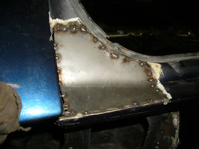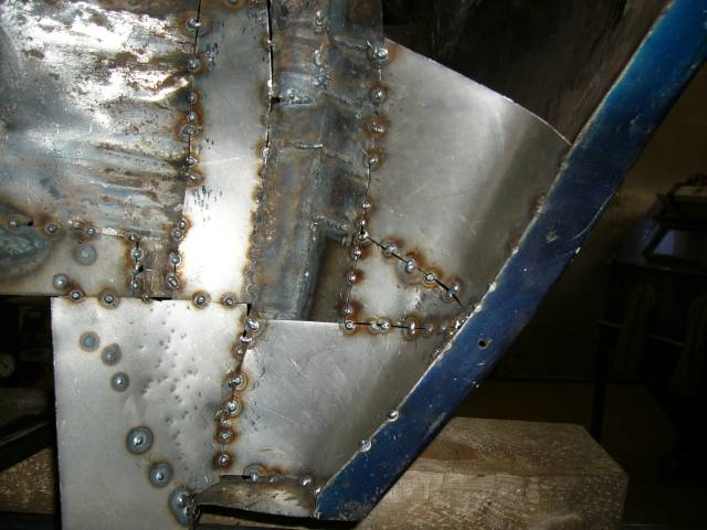 ...ja kuvassa reunaan onkin jo hitsattu lisää peltiä