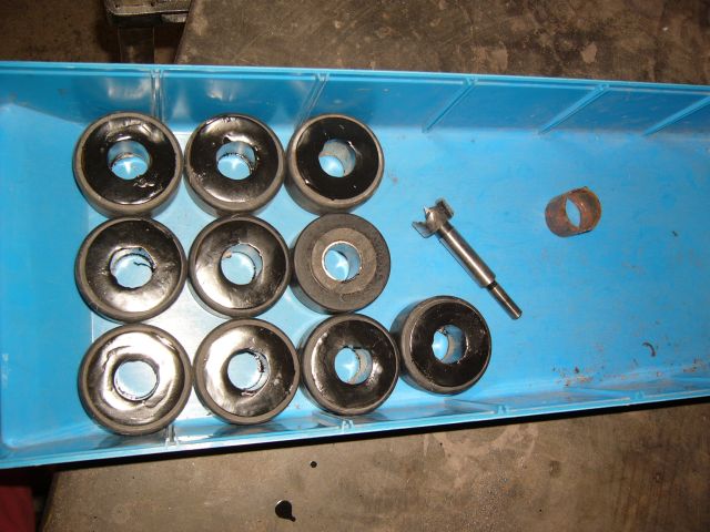 Nämäkin siis joudutaan tekemään itse. Tarkoitusta varten löytyi paikalliselta romikselta kaiteen pätkä, joka oli hitsattu kasaan 25 mm rosteriputkesta, siis oikein hyvää värkkiä tuumaiseen puslaan. Samalta romikselta löytyi myös opivat rikat puslan laipaksi. Hitsasin ne kasaan (alla)