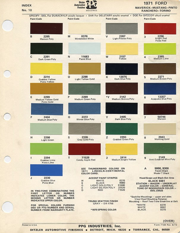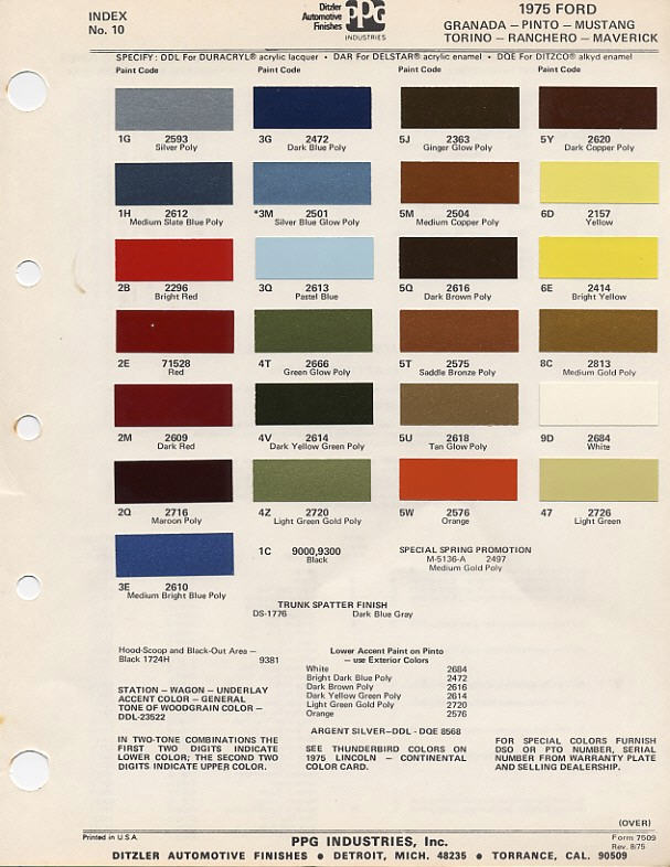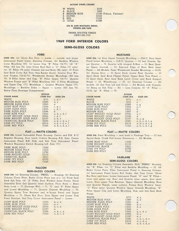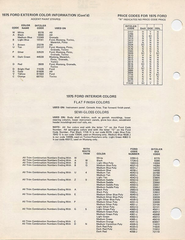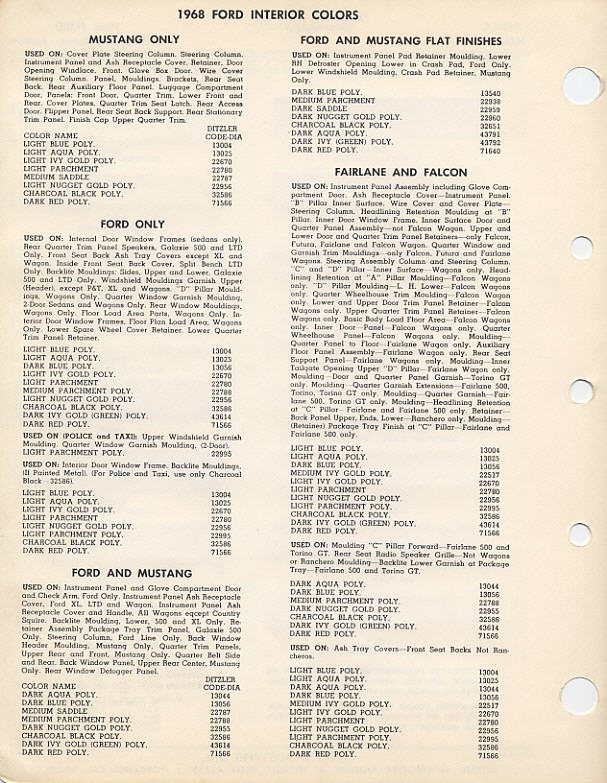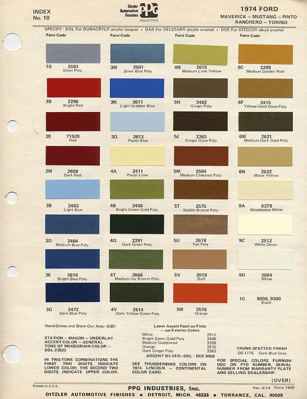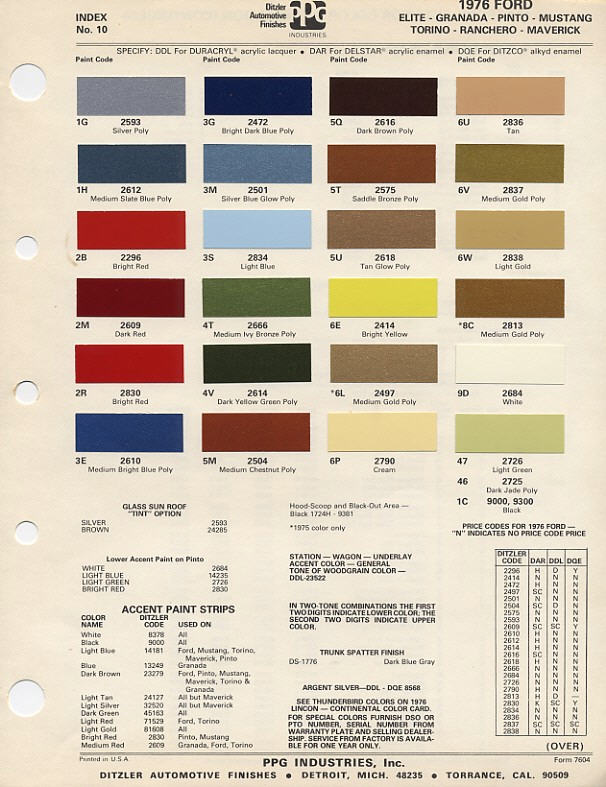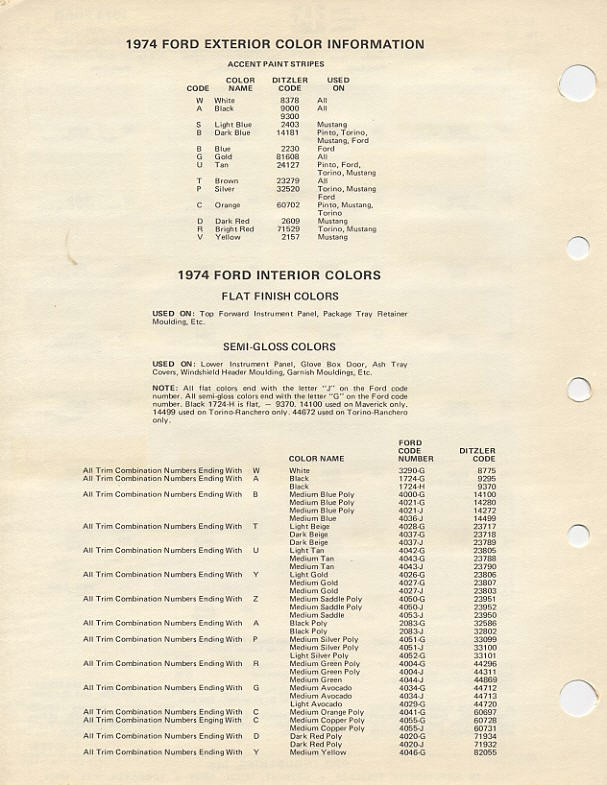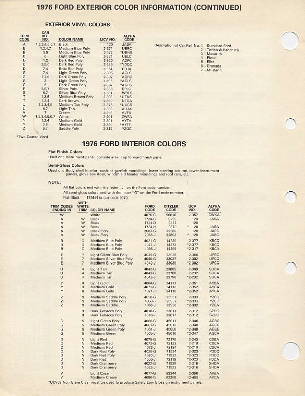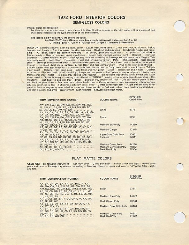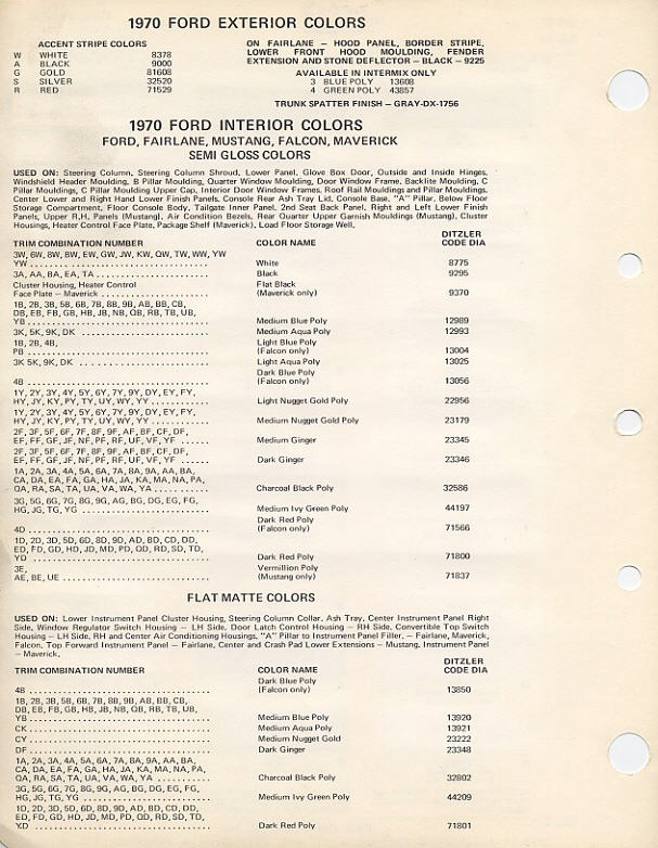FORD TORINO VÄRIKOODIT JA NÄYTTEET 1968-1976
